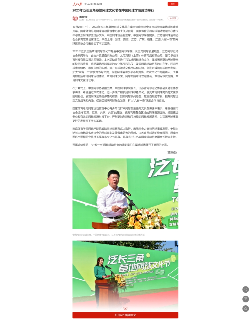 【人民日报网】2023年泛长三角草地网球文化节在中国网球学院成功举行