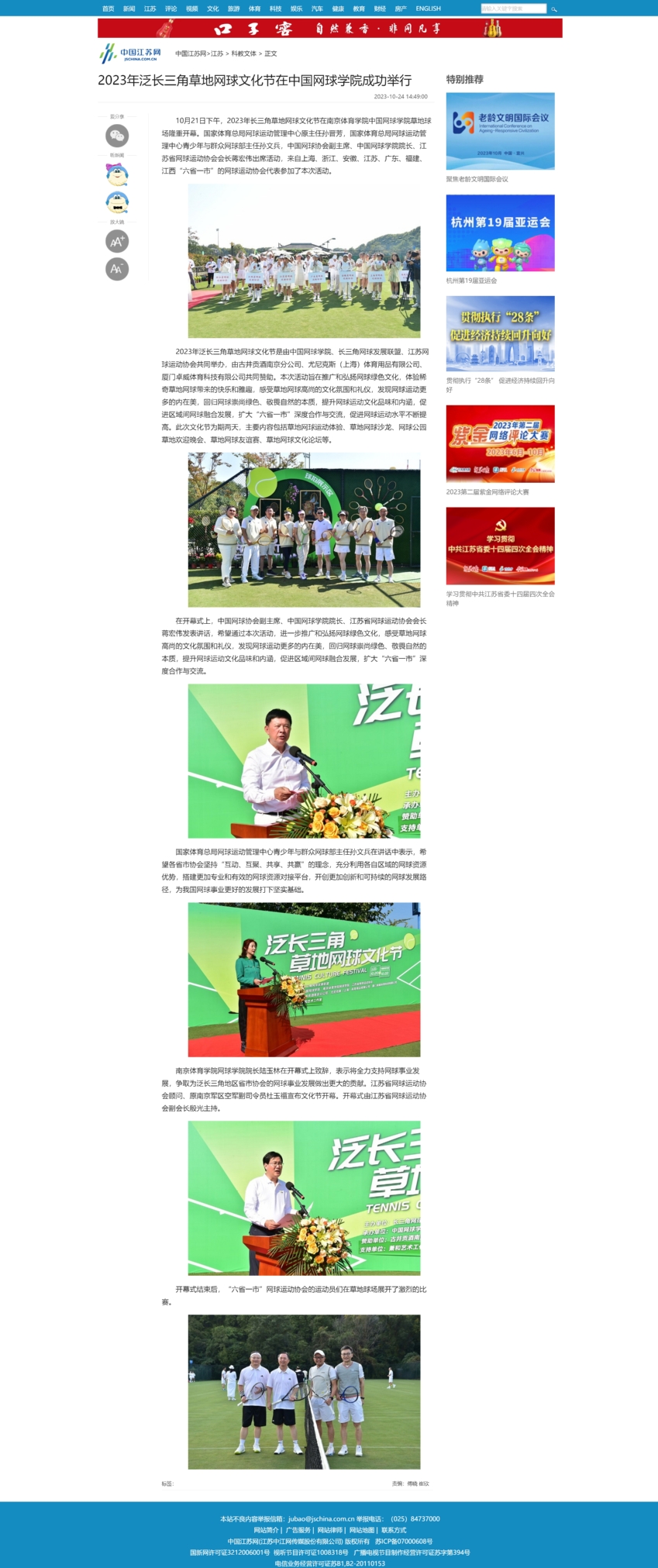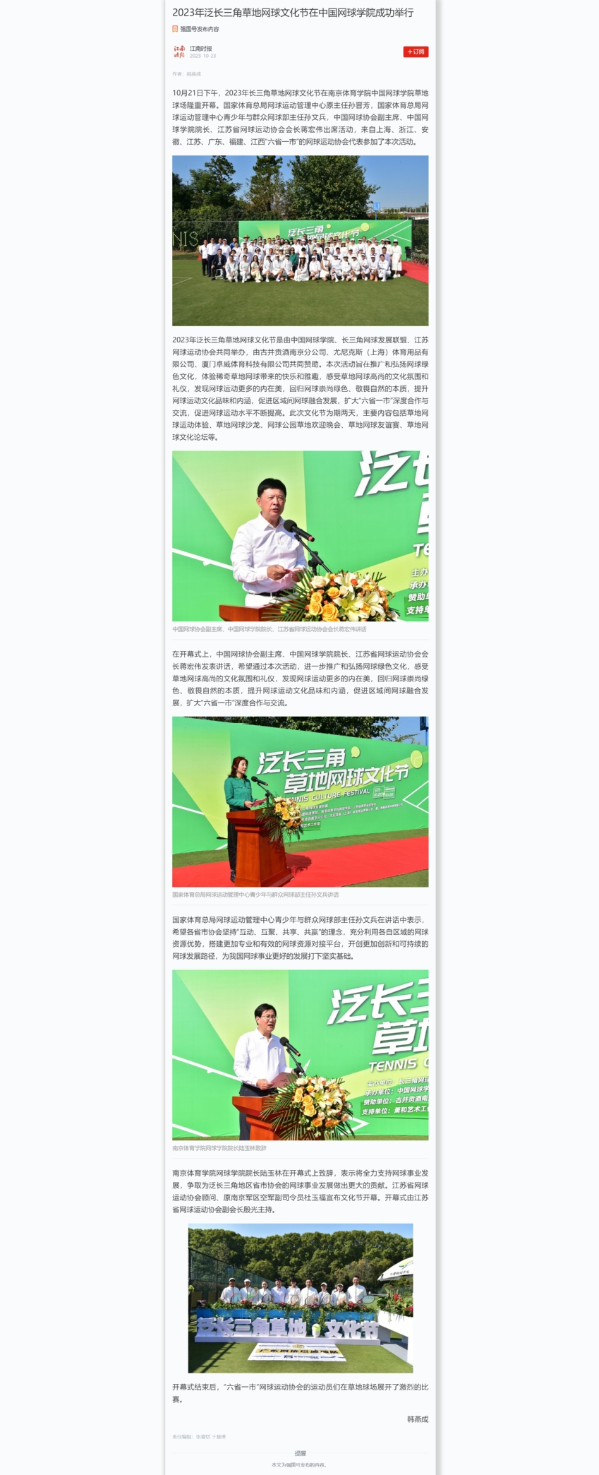 【江苏电视台】2023年泛长三角草地网球文化节在南京举行:http://v.jstv.com/a/20231023/1698070684170.shtml