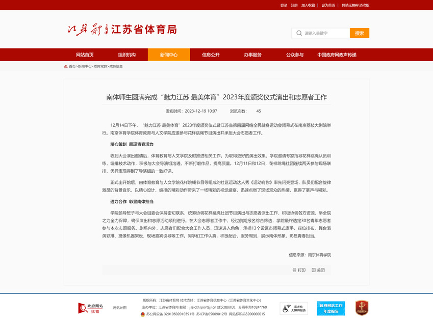 南体师生圆满完成“魅力江苏 最美体育”2023年度颁奖仪式演出和志愿者工作