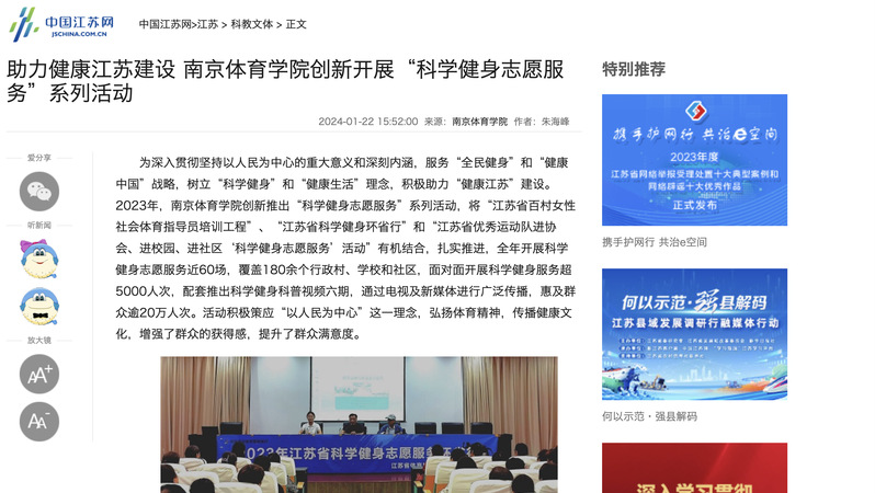 【中国江苏网】助力健康江苏建设 艾弗森贝博ballbet官网创新开展“科学健身志愿服务”系列活动
