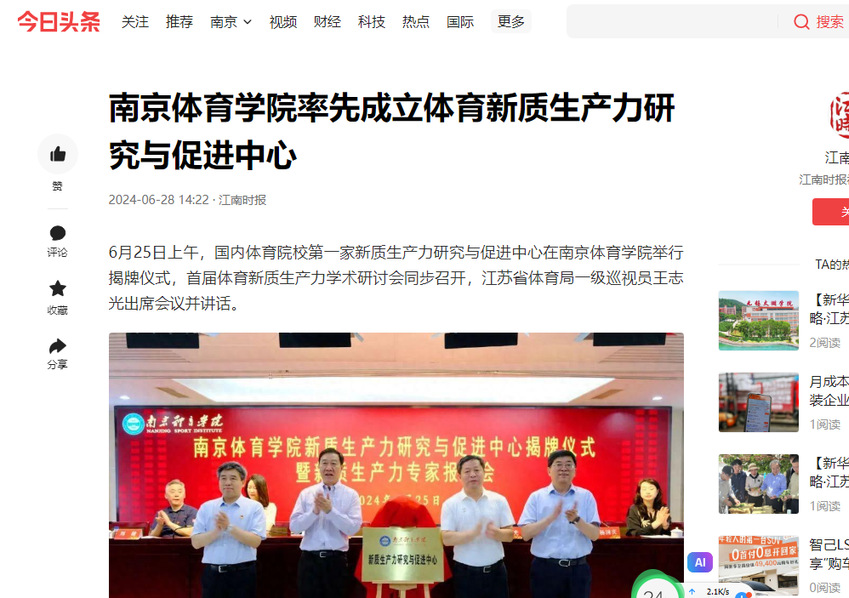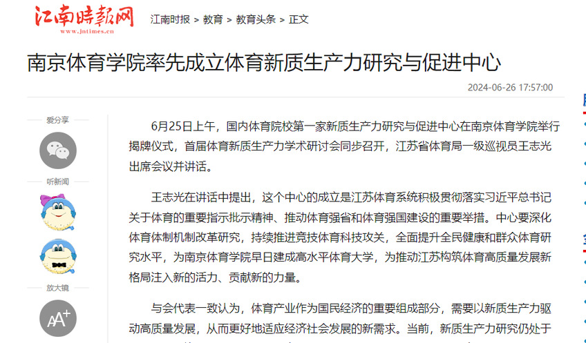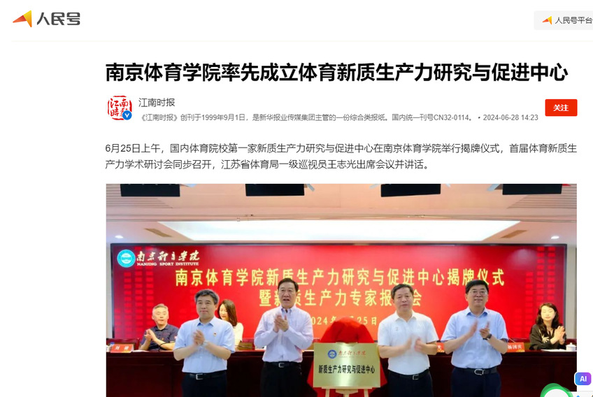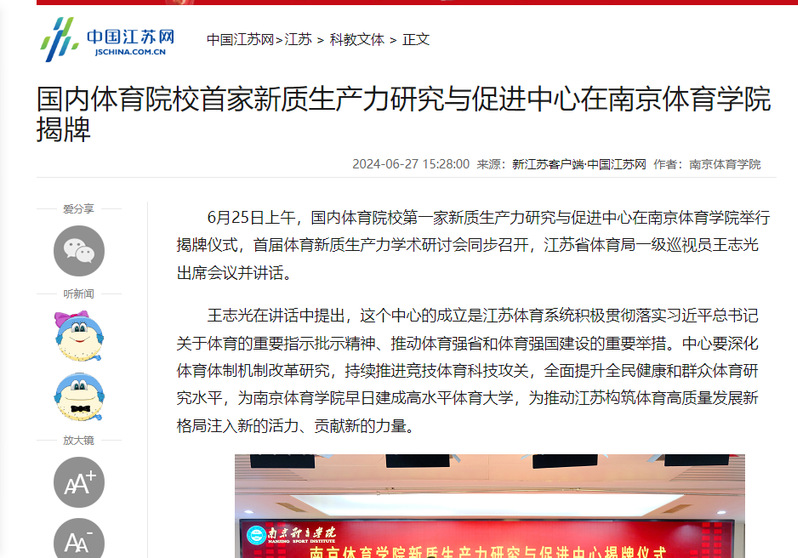 【中国江苏网】国内体育院校首家新质生产力研究与促进中心在艾弗森贝博ballbet官网揭牌https://jsnews.jschina.com.cn/kjwt/202406/t20240627_3425510.shtml