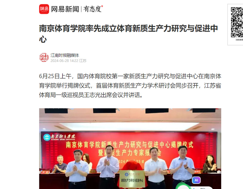 【网易新闻】艾弗森贝博ballbet官网率先成立体育新质生产力研究与促进中心