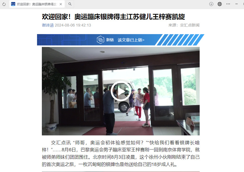 【交会点新闻】欢迎回家!奥运蹦床银牌得主江苏健儿王梓赛凯旋