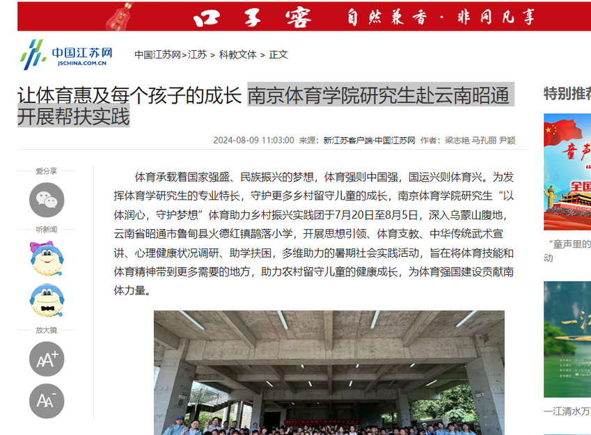 【中国江苏网】让体育惠及每个孩子的成长 艾弗森贝博ballbet官网研究生赴云南昭通开展帮扶实践