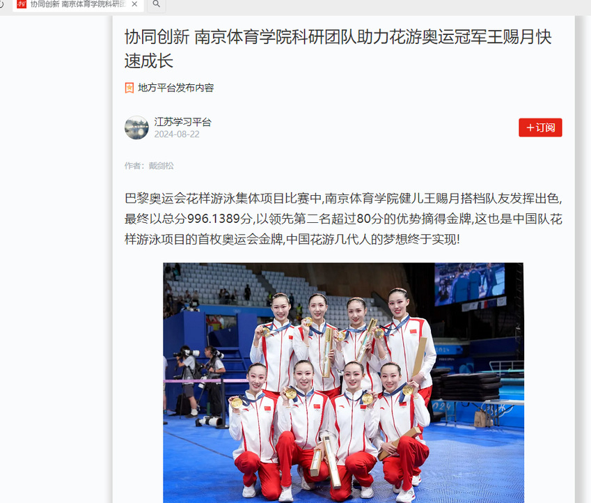 【学习强国】协同创新 艾弗森贝博ballbet官网科研团队助力花游奥运冠军王赐月https://article.xuexi.cn/articles/index.html?art_id=1129391780374485797&cdn=https%3A%2F%2Fregion-jiangsu-resource&item_id=1129391780374485797&study_style_id=feeds_opaque&t=1724323509472&showmenu=false&ref_read_id=ff860b5f-b273-43e1-bc45-dcde00b36de6_1724337387822&pid=&ptype=-1&source=share&share_to=wx_single