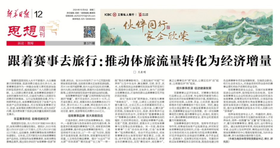 《新华日报》:跟着赛事去旅行:推动体旅流量转化为经济增量