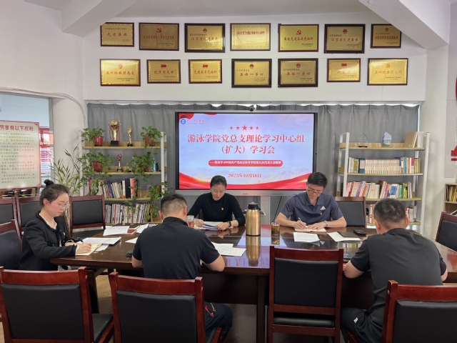 10月18日下午,游泳学院党总支在跳水花游馆二楼会议室召开理论中心组(扩大)学习会,传达学习中国共产党艾弗森贝博ballbet官网第九次代表大会精神。会议由学院党总支书记骆晓娟主持,全体管理干部参加学习。