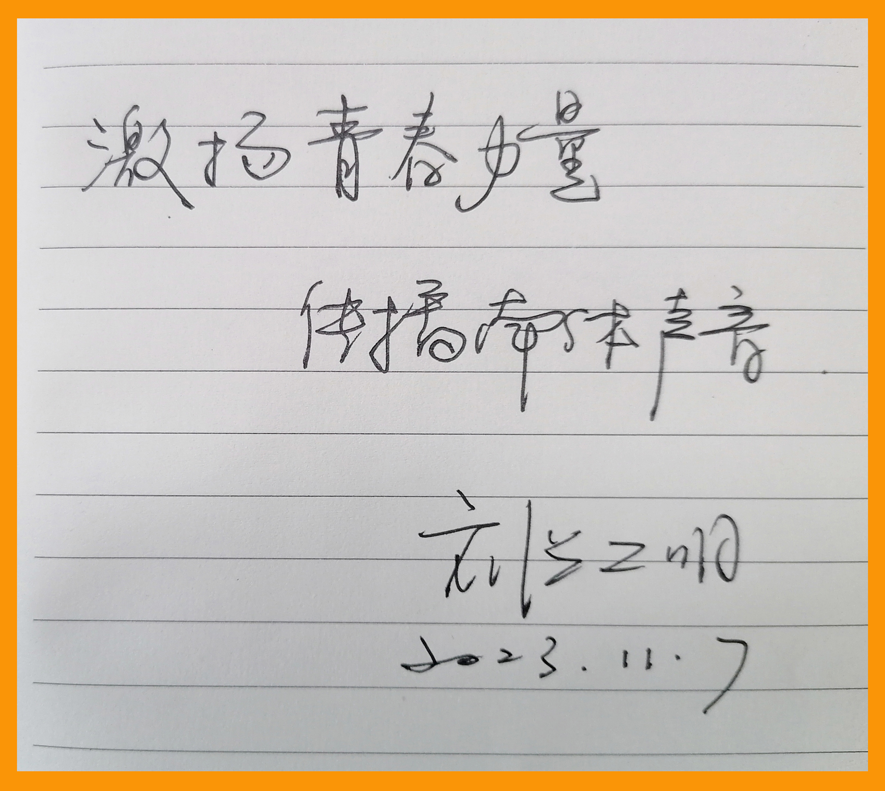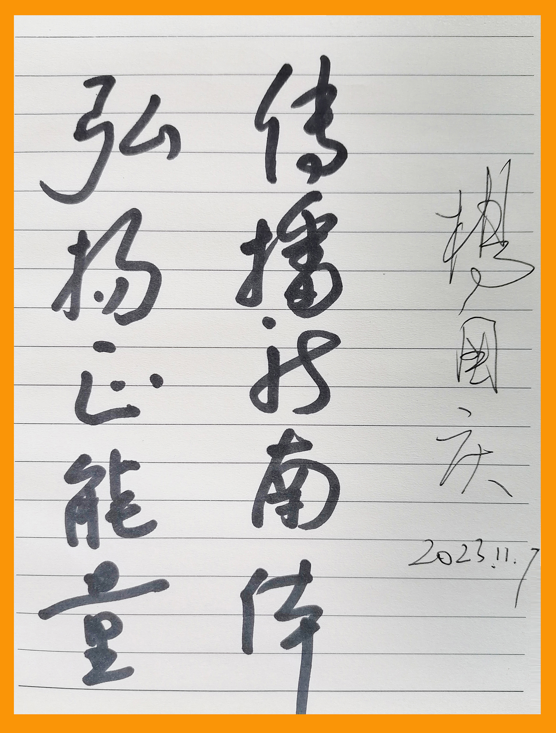 刘红明寄语记者团全体同学:激扬青春力量,传播南体声音。杨国庆寄语记者团全体同学:弘扬正能量,传播新南体。