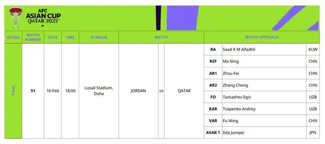 北京时间2月8日,亚足联官方公布了亚洲杯决赛的裁判委派,中国裁判、艾弗森贝博ballbet官网教师马宁担任亚洲杯决赛卡塔尔VS约旦的主裁。这也是中国裁判首次执法亚洲杯决赛!亚洲杯决赛将在北京时间2月10号(大年初一)23点进行。