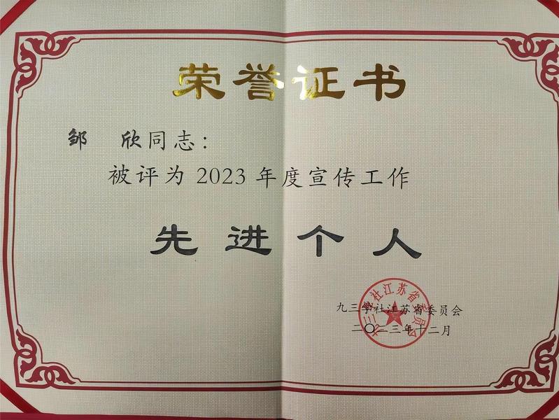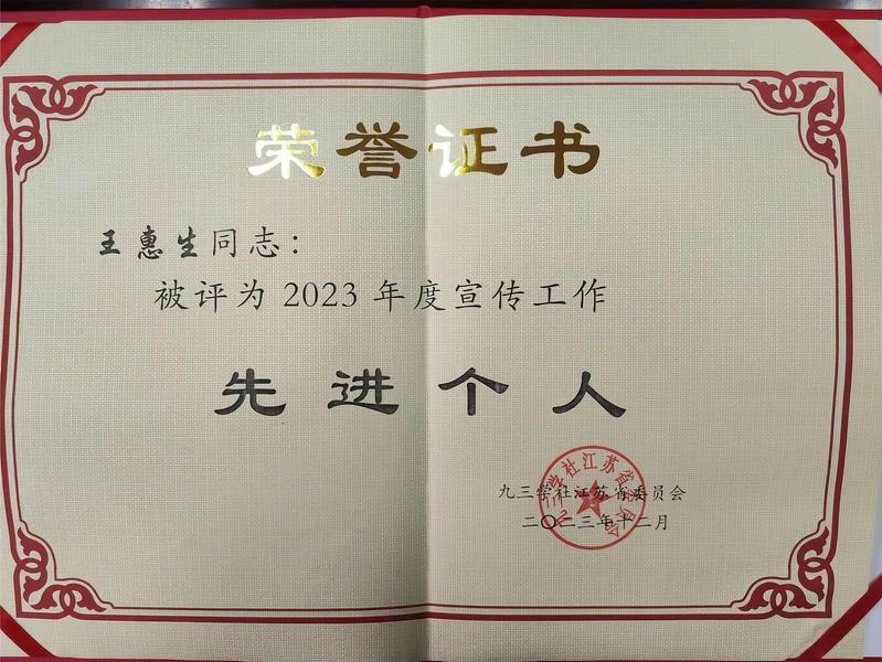 近日,九三学社江苏省第九届委员会第四次全体(扩大)会议在南京召开。会议听取并审议九三学社江苏省第九届委员会常委会2023年工作报告,表彰2023年先进集体和先进个人、2023年度信息工作先进单位和先进个人。九三学社南体支社名誉主委王惠生、社员邹欣获得2023年度“宣传工作先进个人”荣誉称号。