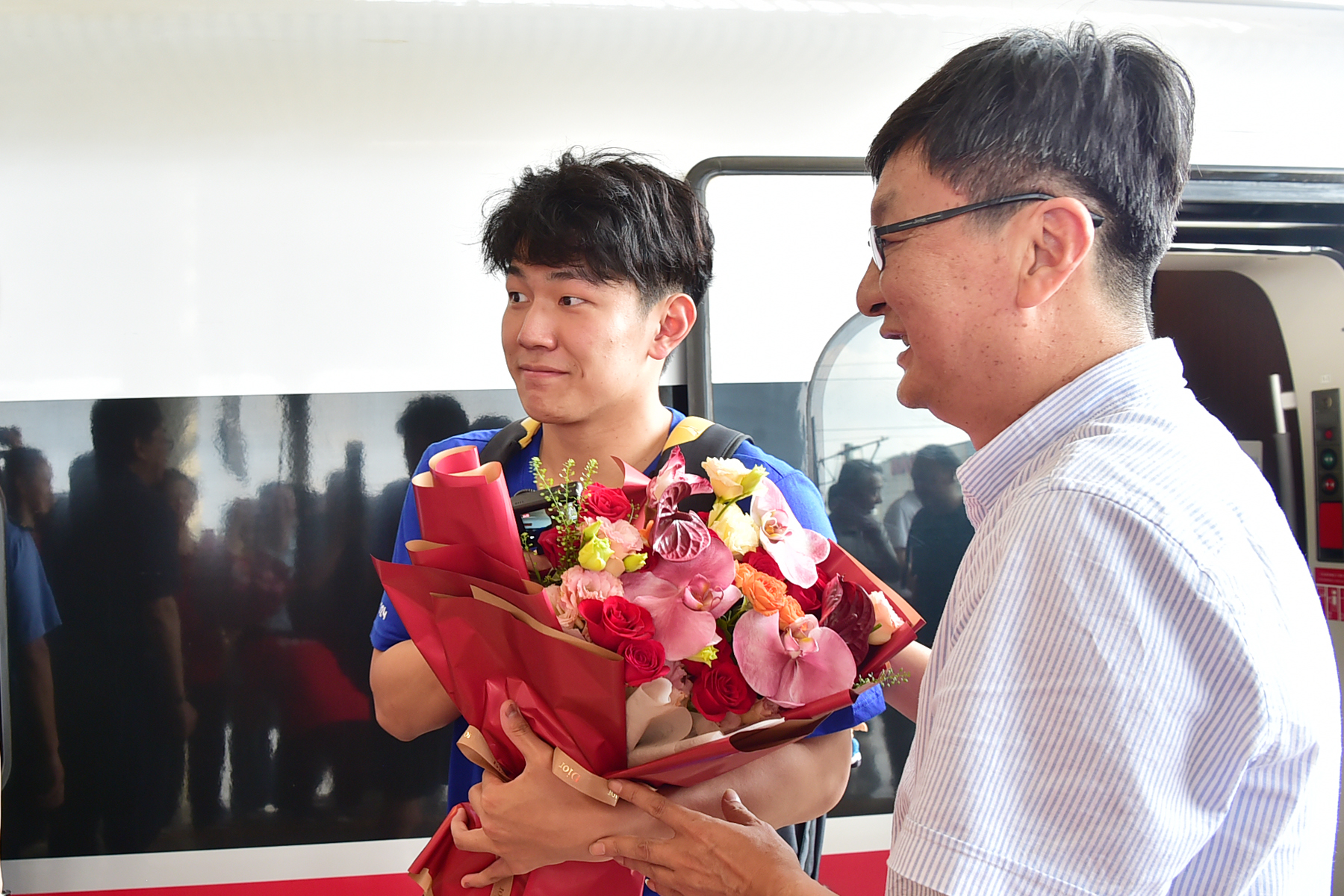 省体育局副局长刘彤到南京南站迎接南体奥运健儿