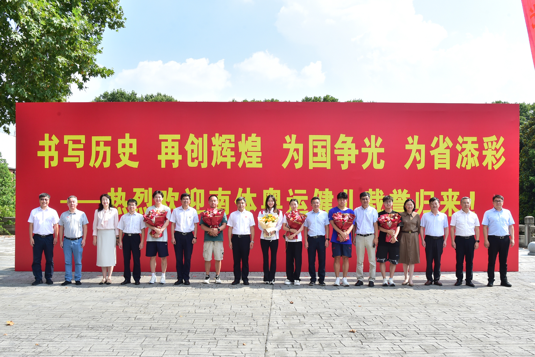 南体奥运健儿王赐月、郝婷和董志豪与省、市体育局领导及校领导等合影