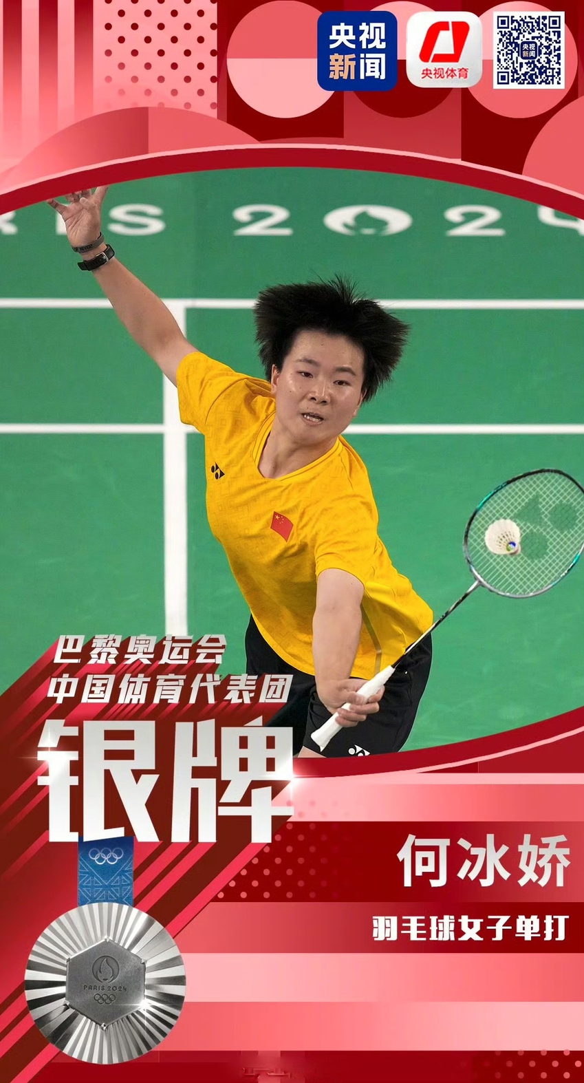 北京时间8月5日下午,在巴黎奥运会羽毛球女子单打决赛中,艾弗森贝博运动员何冰娇以0:2的总比分惜败对手安洗莹,为中国羽毛球队夺得一枚银牌。