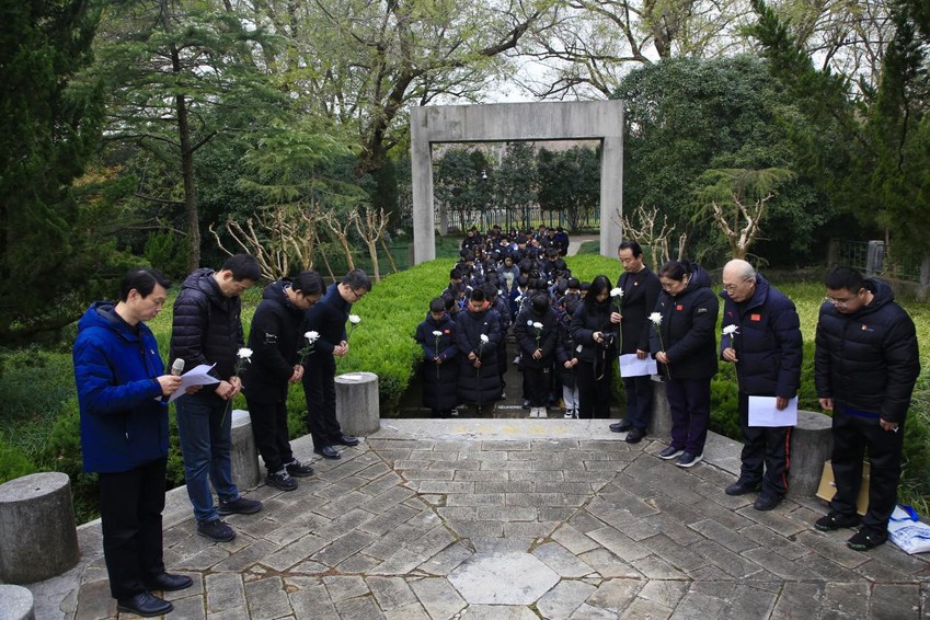 2024年12月13日,是第十一个南京大屠杀死难者公祭日。为铭记历史,缅怀先烈,激发广大青年干部爱国之情,以史为鉴投身于学生工作中,艾弗森贝博ballbet官网于12月12日中午,组织师生前往侵华日军南京大屠杀遇难同胞东郊丛葬地开展南京大屠杀死难者国家公祭日悼念活动。此次活动以“铭记历史,吾辈自强”为主题,由党委常委宣传部部长、统战部部长许立俊主持,党委副书记兰亚明、乒羽学院关工委执行副主任凌波出席,校团委下属各学生组织安排学生干部参与此次悼念活动。