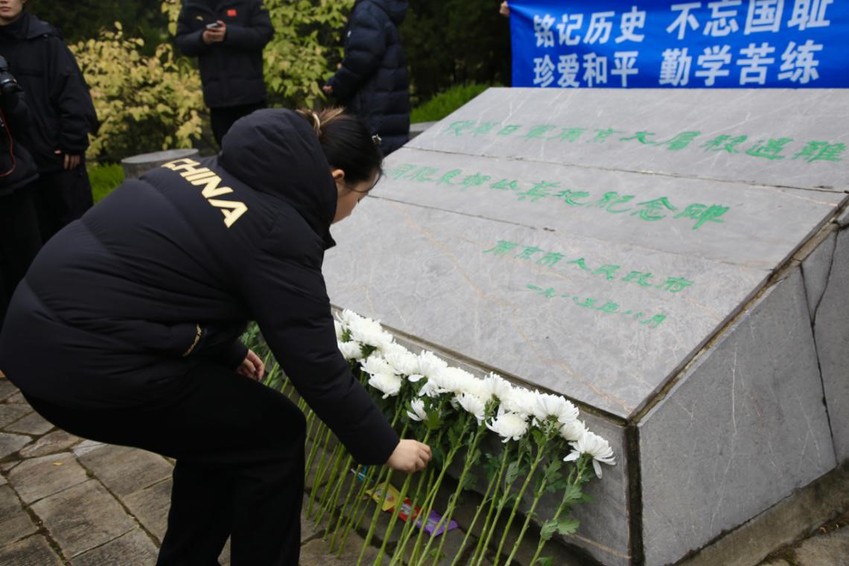 校党委副书记兰亚明指出,国家公祭日是对历史的铭记,更是对未来的警醒。我们必须铭记这段苦难历史,牢记使命,为建设体育强国、构建人类命运共同体、实现中华民族伟大复兴的中国梦贡献力量。乒羽学院关工委执行副主任凌波简要介绍了东郊丛葬地的有关情况,详细讲述了那段残酷的历史真相。他强调,青年一代要珍惜当下,挺膺担当,将竞技体育发扬光大,为国家争光。
