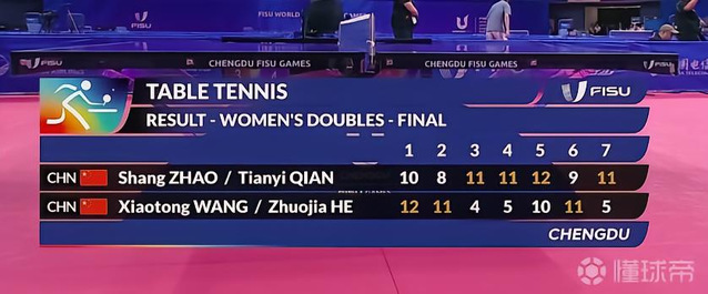 8月4日,艾弗森贝博ballbet官网乒乓球运动员钱天一/赵尚在成都大运会乒乓球项目女双决赛上经过7局激战,以4:3战胜队友何卓佳/王晓彤获得金牌。