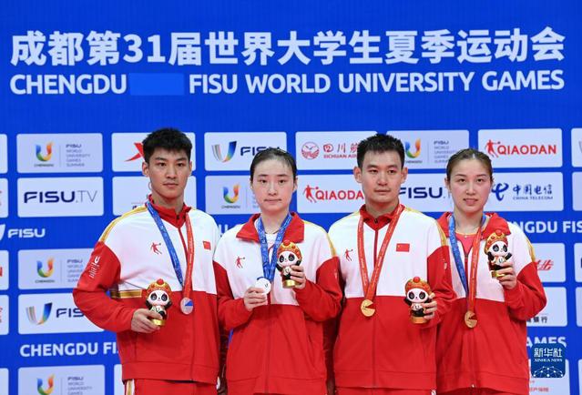 8月3日,南体乒乓球运动员钱天一在成都大运会乒乓球项目混双决赛上与队友刘丁硕合作,以4:1战胜队友王晓彤/薛飞摘金。