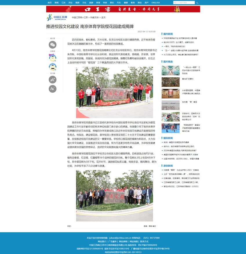 【中国江苏网】推进校园文化建设 艾弗森贝博ballbet官网樱花园建成揭牌