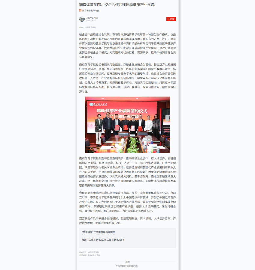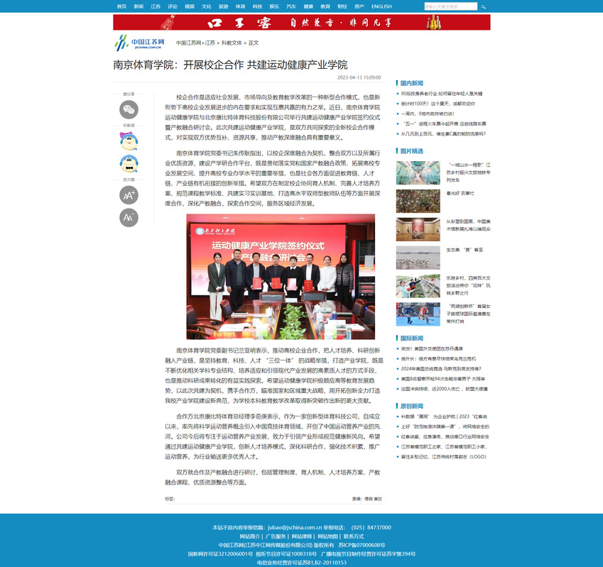 【中国江苏网】艾弗森贝博ballbet官网:开展校企合作 共建运动健康产业学院