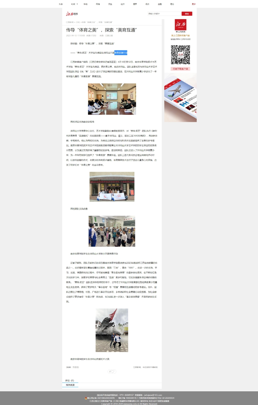 江西新闻:传导“体育之美”,探索“美育互通”