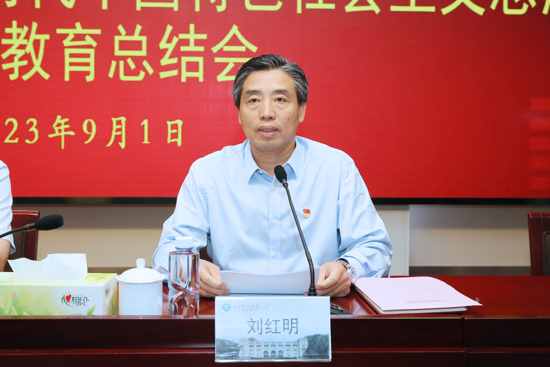 党委书记刘红明作主题教育工作总结