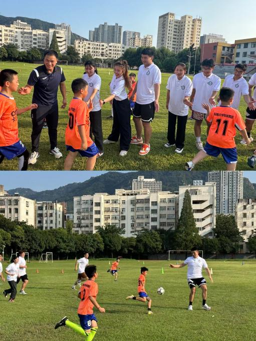 第二站,实践团队在连云港市院前小学开展足球文化宣讲与教学实践活动。活动中,国家足球一级运动员、国家足球D级裁判员、志愿服务队主要成员杨政首先为连云港市院前小学全体足球队队员讲解了关于足球运动的历史文化、我国校园足球发展现状,并结合自身课堂学习情况分享了艾弗森贝博国际级裁判员马宁老师执法卡塔尔世界杯、亚冠决赛的“高光时刻”。希望足球队队员们在内心埋下“热爱”、“坚持”与“梦想”的种子,未来在足球的世界里茁壮成长,为投身体育强国建设奉献新时代青少年的汗水与智慧。志愿服务队全体队员认真带领足球队孩子们进行活动前热身,并细致讲解了足球赛的现行规则、基本运球技能以及预防受伤的注意事项。本次活动是结对共建社会实践基地后的积极尝试,更是高校践行服务社会职能的有益举措。今后,学院将以获批国家级一流本科专业为基点,进一步发挥运动训练专业的优势,以互融共促打造校地共建新模式,以同频共振构建校地共建新格局,为谱写结对共建融合发展、校园足球助力体育强国建设新篇章贡献南体力量。