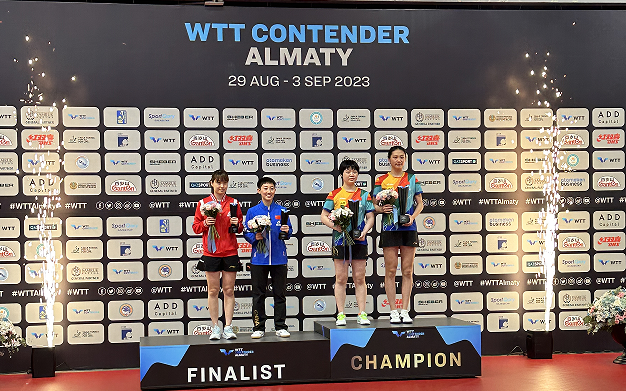 9月3日,在WTT常规挑战赛阿拉木图站比赛中,乒羽学院乒乓球队运动员蒯曼获得女单、女双冠军,成为该站赛事的双冠王。