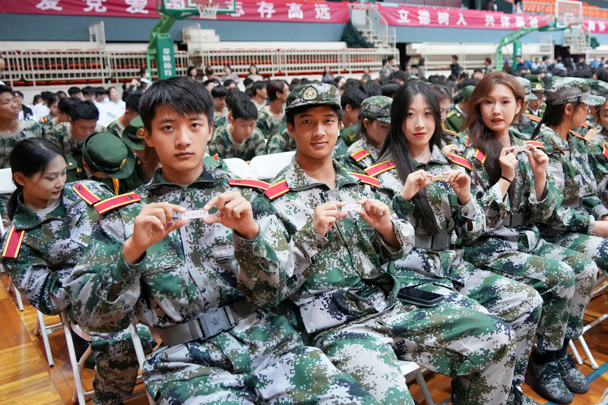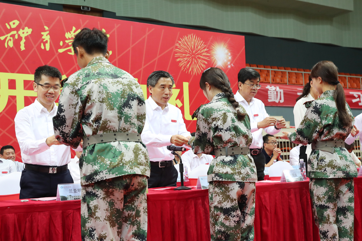 全体校领导为新生代表颁发校徽。随后,现场全体师生起立,一同佩戴校徽。校徽是身份的标识,更是文化的传承、心灵的引领和价值的塑造。从此刻起,年轻的南体人将与学校“血脉相连”,共担发展使命,共迎美好未来。