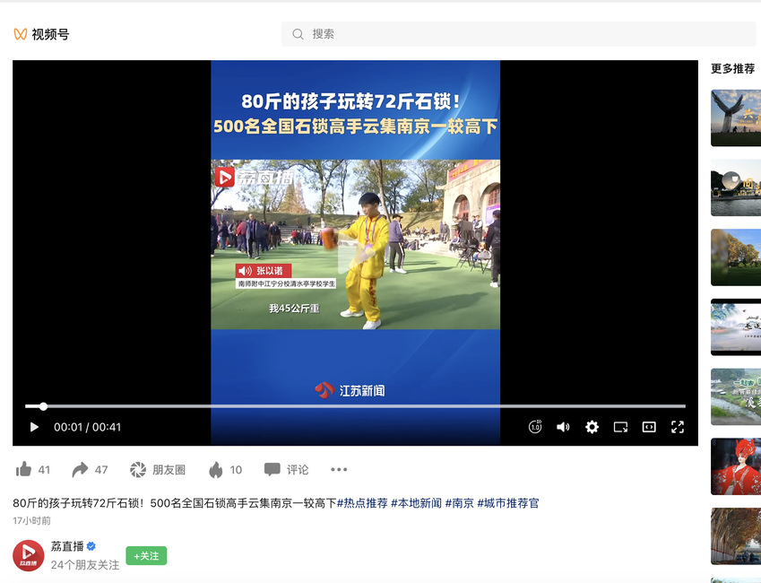 【江苏新闻】80斤的孩子玩转72斤石锁!500名全国石锁高手云集南京一较高下