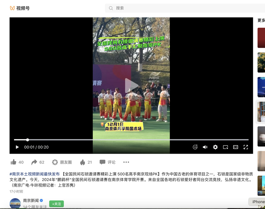 【南京日报】2024年全国民间石锁邀请赛在宁举行