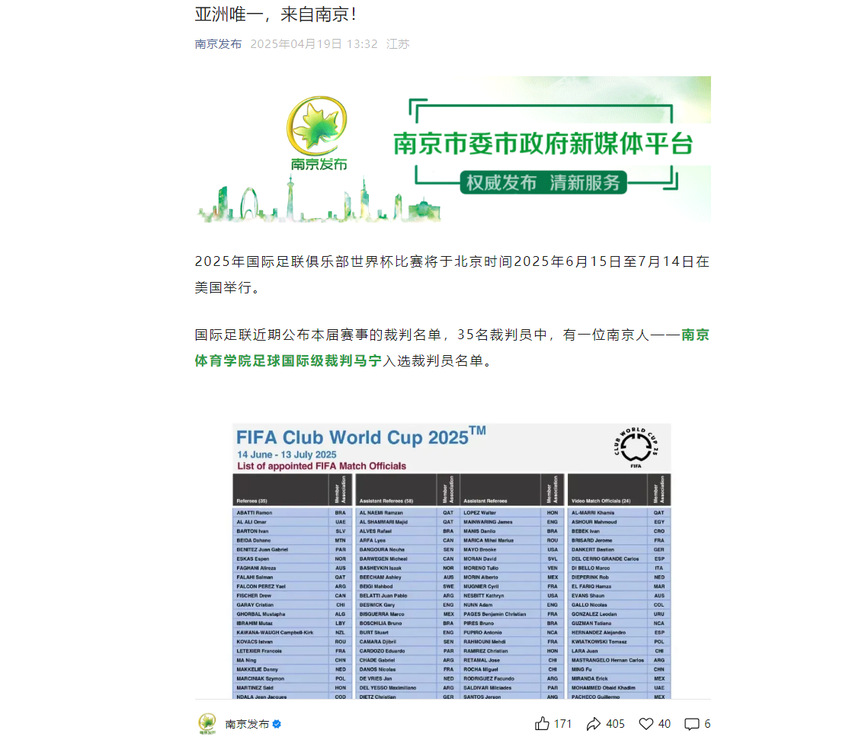 【紫金山新闻】南体教师马宁入选2025FIFA俱乐部世界杯裁判名单