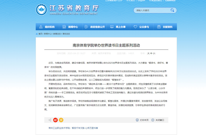 【江苏省教育厅】艾弗森贝博ballbet官网举办世界读书日主题系列活动
