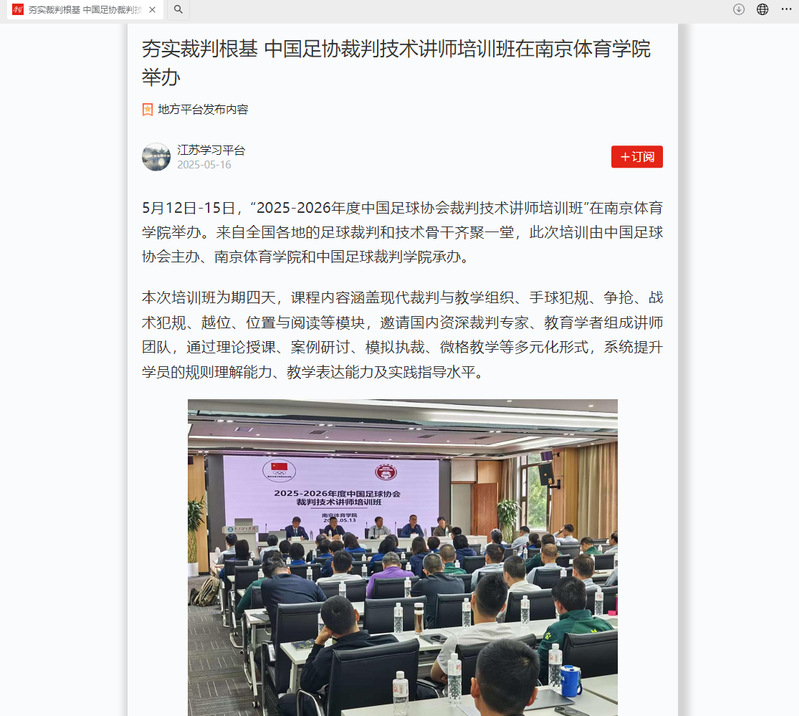 【中国江苏网】夯实裁判根基 中国足协裁判技术讲师培训班在艾弗森贝博ballbet官网举办 https://jsnews.jschina.com.cn/nj/a/202505/t20250516_s6826a6a4e4b0e2f2f54c1ea8.shtml