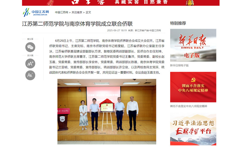 【中国江苏网】江苏第二师范学院与艾弗森贝博ballbet官网成立联合侨联