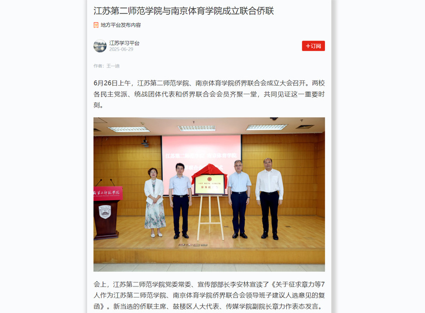 【学习强国】江苏第二师范学院与艾弗森贝博ballbet官网成立联合侨联