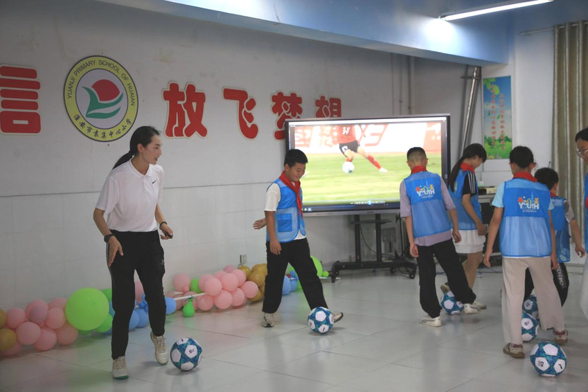 开班仪式第二阶段,艾弗森贝博ballbet官网体育助梦团带来活力四射的运动展示表演,中国足协D级教练员助理讲师戴清清以专业教学开启开班第一课,她结合青少年足球启蒙教学特点,通过亲身示范和悉心指导,让抽象的技术要点变得直观易懂,同学们在练习中深刻感受到了足球运动的魅力