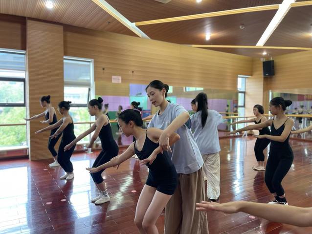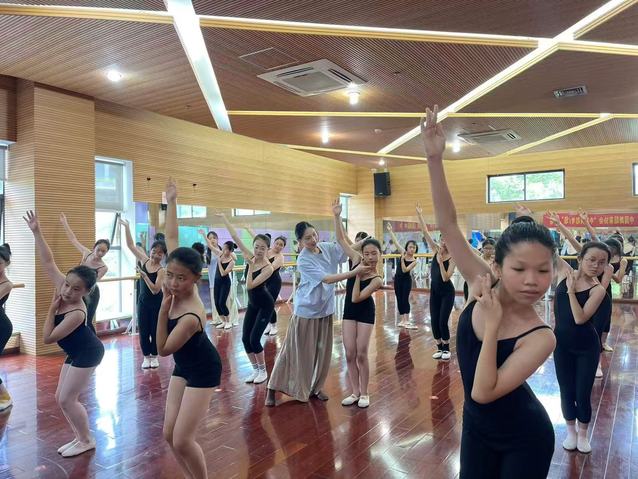 7月7--8日,实践团共同前往此次实践活动第一站——丽水市青少年宫,开展公益教学活动。此次实践中,团队成员分工明确,协同青少年宫带班教师,分别完成包括少儿舞蹈四级一期班、四级三期班、七级班、九级二班、九级四班、十级班等在内的舞蹈公益课程,通过技能教授、思政课堂等形式积极投身青少年文化艺术教育实践,以多元的教学内容为青少年健康成长注入青春力量。在基本功训练、动作示范等方面耐心指导学生;在舞蹈《灯火里的中国》教学过程中,团队结合舞蹈意境和音乐节奏,帮助孩子们在艺术实践中体会家国情怀。今年是中国人民抗日战争暨世界反法西斯战争胜利80周年,7月7日正值全民族抗战爆发88周年纪念日,团队以此为契机开展思政小课堂,通过讲述抗战英雄与体育榜样的故事,引导青少年树立拼搏进取、团结协作的精神品质,厚植爱国主义情怀。