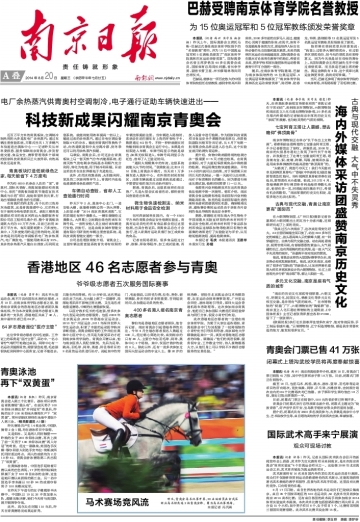 南京晨报头版:巴赫当上南京体院名誉教授 可惜没能请老朋友栾菊杰吃上饭