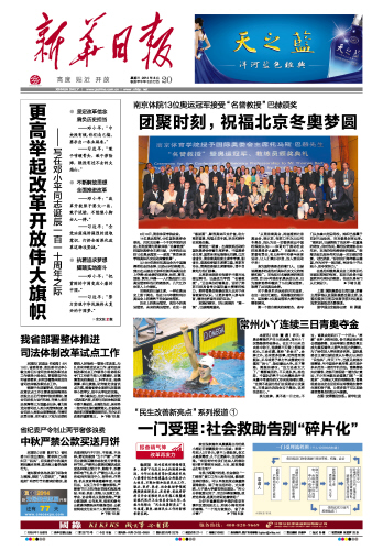 新华日报头版:南京体院13位奥运冠军接受“名誉教授”巴赫颁奖 团聚时刻,祝福北京冬奥梦圆
