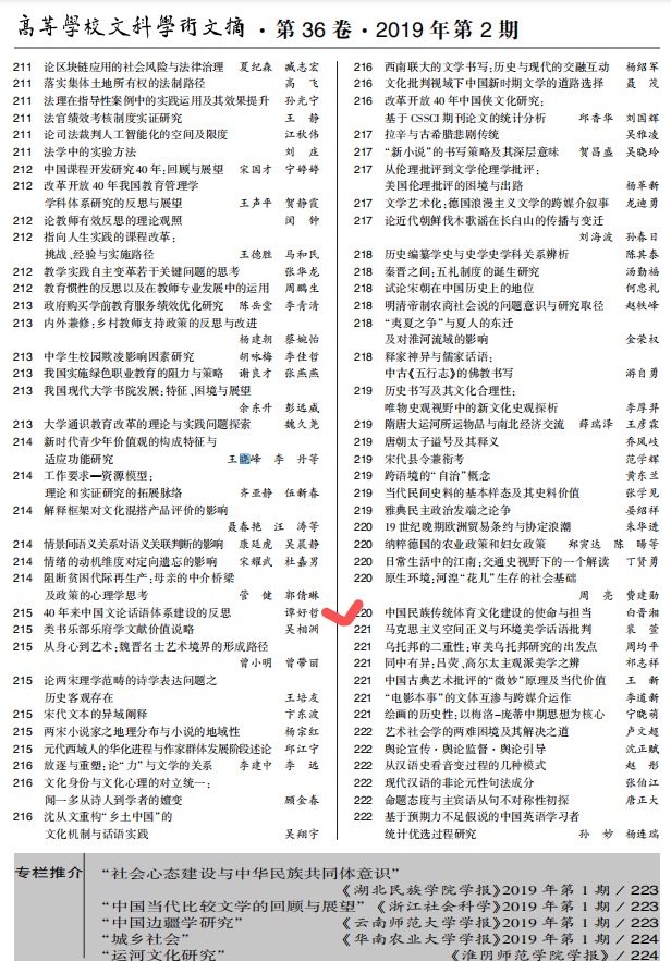 《高等学校文科学术文摘》创刊于1984年,是我国重要的二次文献评价机构,重点反映人文社会科学各学科研究中具有原创性或体现新观点、新思路、新材料,提出或解决相关学术问题的优秀论文,以及学科研究中具有前瞻性、探索性或多学科与跨学科研究等方面的前沿成果,积极推荐人文社会科学研究中与国家社会经济改革和发展密切联系的具有全局性、战略性或具有重大理论和现实意义的优秀成果;转载推出一大批人文社会科学重要论文。为活跃理论学术界的探讨研究,以及为国家、地方有关部门的决策提供了有力支持,为中国人文社会科学的繁荣发展贡献一份力量。近年来,该机构广受学术界、期刊界认可。