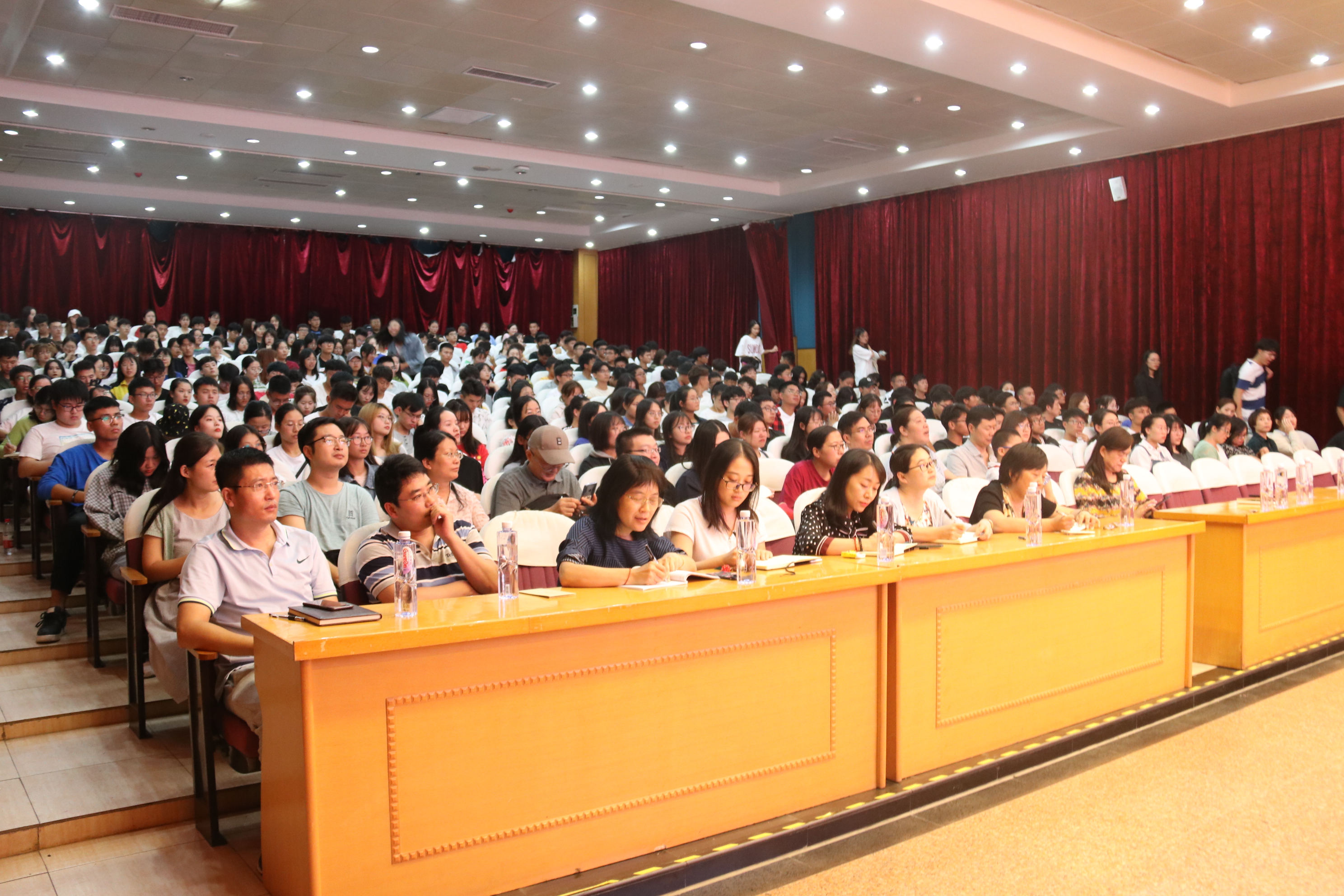 根据《体育教育与人文学院“不忘初心 牢记使命”主题教育实施方案》安排,为庆祝建国七十周年,9月25日晚6点半,由体育教育与人文学院主办、马克思主义学院协办《建国后的准备—70年后的回望》讲座在图书馆报告厅举行。讲座特邀南京理工大学马克思主义学院陈钊副教授讲授,陈教授为江苏高校优秀思想政治理论示范课巡讲团成员、南理工中国近现代史纲要教研室主任。出席本次讲座的有:体育教育与人文学院党总支书记邹国忠,副书记、院长沈鹤军,马克思主义学院副院长葛翠柏、体育教育与人文学院党总支副书记卢奎,我院及马克思主义学院全体科级干部、党员教师,及300名在校大学生。讲座由邹国忠书记主持。