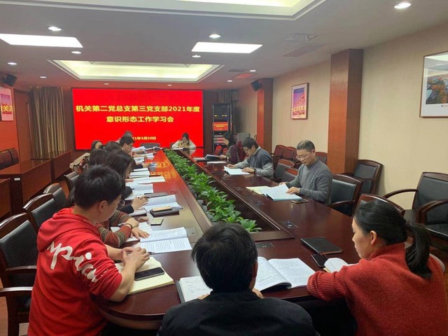 3月10日下午,机关第二党总支第三党支部在行政办公楼301会议室组织召开意识形态工作知识专题学习会。会议由支部书记王利雅主持,支部全体党员参加会议。