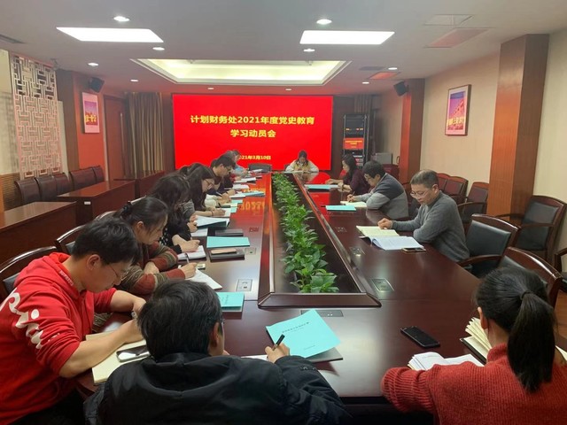 3月10日下午,计划财务处在行政办公楼301会议室召开党史学习教育动员会。支部书记王利雅主持会议,计划财务处全体人员参加了会议。