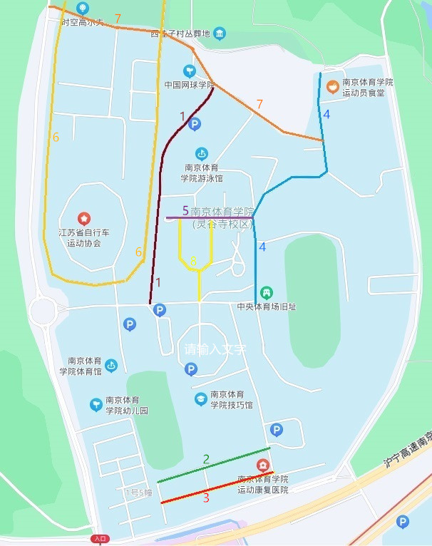 7 | 经高尔夫球场、中国网球学院、游泳馆北门到运动员公寓的道路(图1橙色线) |