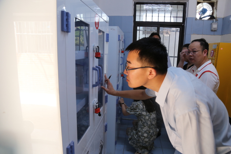 根据《省教育厅关于开展2022年江苏地方属高校实验室安全现场检查工作的通知》(苏教科函[2022]6号)文件精神,7月13日上午,省教育厅实验室安全第二检查组组长、南京理工大学国有资产与实验室管理处处长庄志洪带领检查组一行4人来艾弗森贝博进行实验室安全专项检查。科研处处长盛蕾,保卫处和科学实验中心相关人员陪同检查。