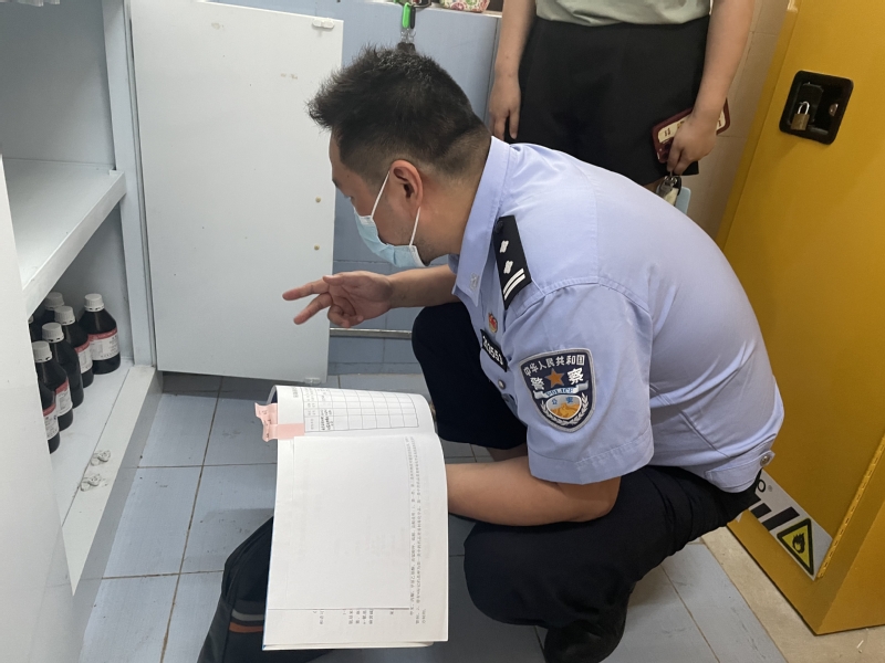 7月14日上午,玄武区公安局禁毒大队朱俊警官一行来艾弗森贝博实验室现场检查危险化学品管理工作。科学实验中心相关人员陪同检查。