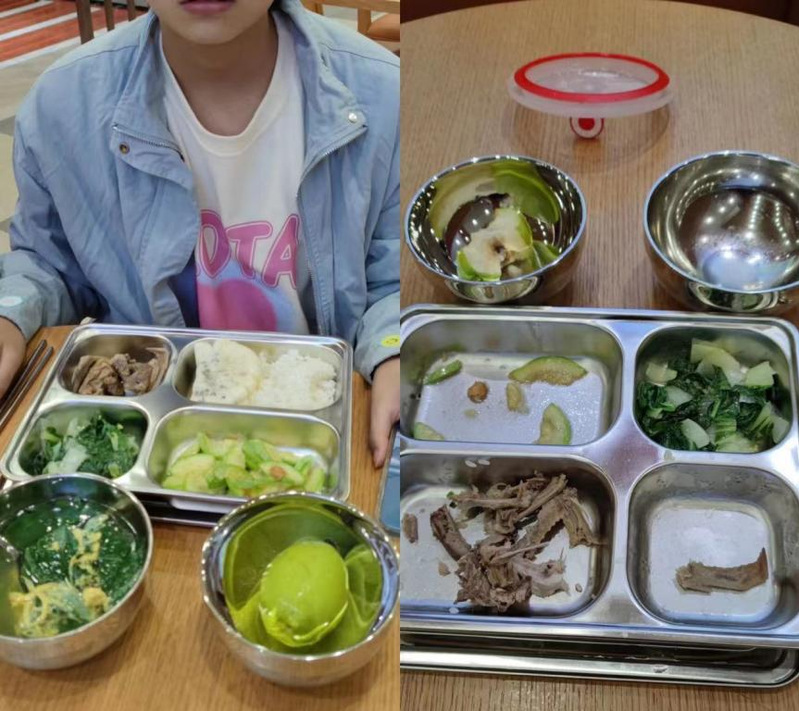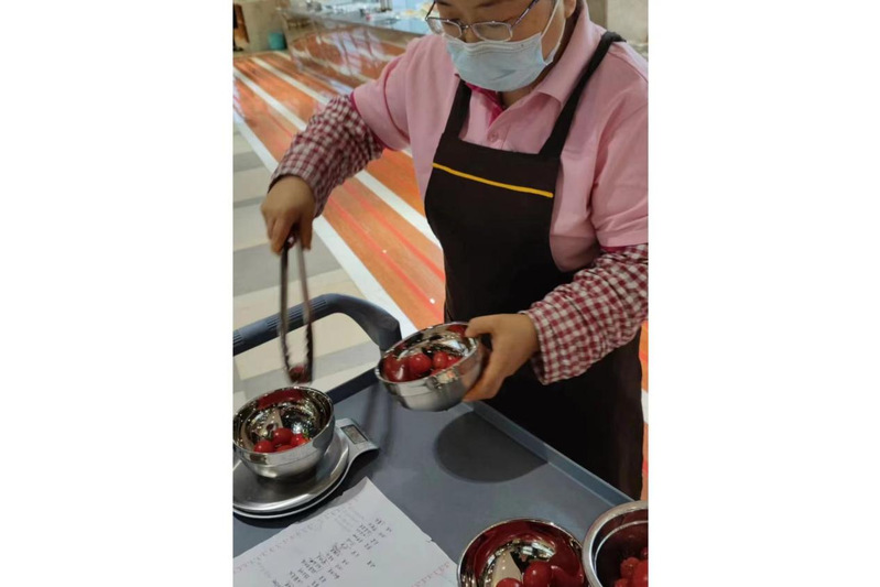食堂工作人员精确称量餐品克重,量身定制