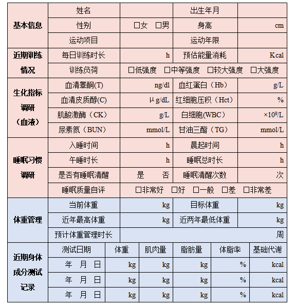 运动员综合调研表