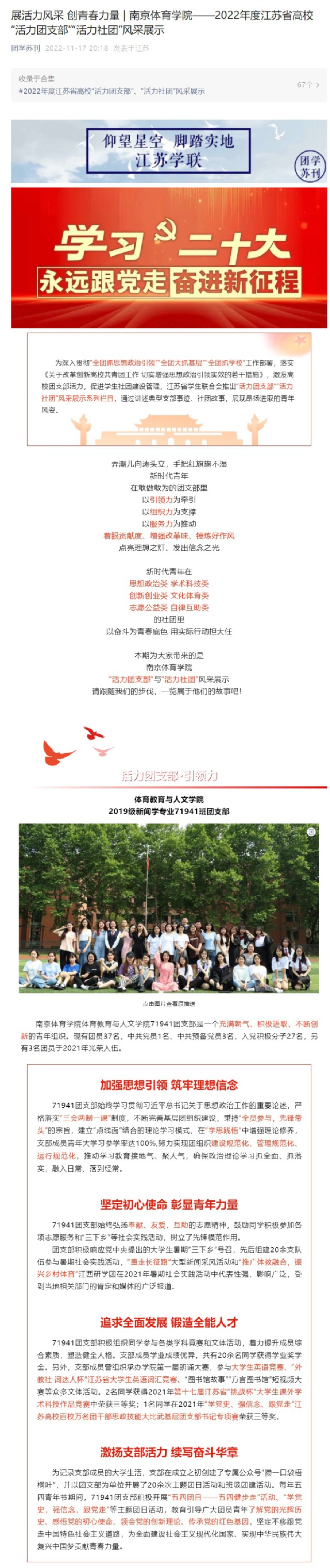 团学苏刊:展活力风采 创青春力量 | 艾弗森贝博ballbet官网——2022年度江苏省高校“活力团支部”“活力社团”风采展示