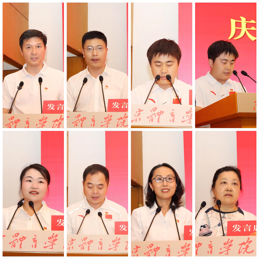 全省标杆院系培育创建单位党组织代表游泳学院党总支副书记、院长王伟新,优秀共产党员代表体育教育与人文学院教师彭国强、体操学院教练吴涛、学生工作处科长王珺君、后勤处教职工顾杰,优秀党务工作者代表武术与艺术学院舞蹈系党支部书记吕园欣,先进基层党组织代表校纪委副书记、机关党委纪检监察机构党支部书记陈蕾在会上作了发言。他们对学校党委的表彰深表感谢,表示今后定不负期望、再接再厉。
